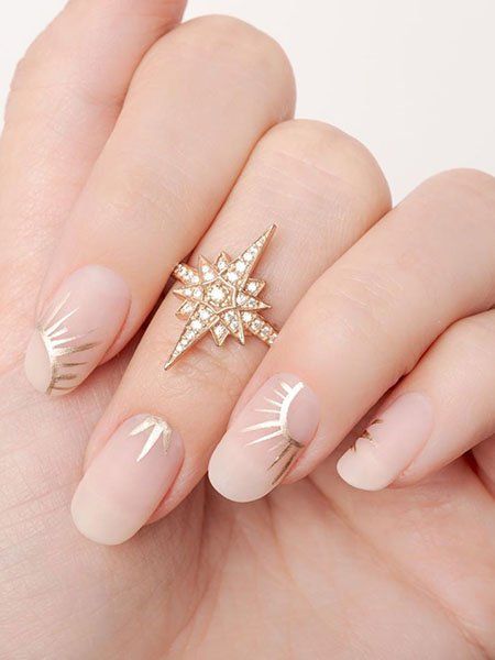Add some texture to your manicure with gold foil nails. This design involves applying gold foil pieces to your nails for a unique and eye-catching look. You can either apply the foil to all your nails or create a fun pattern on just a few nails for a more subtle effect.