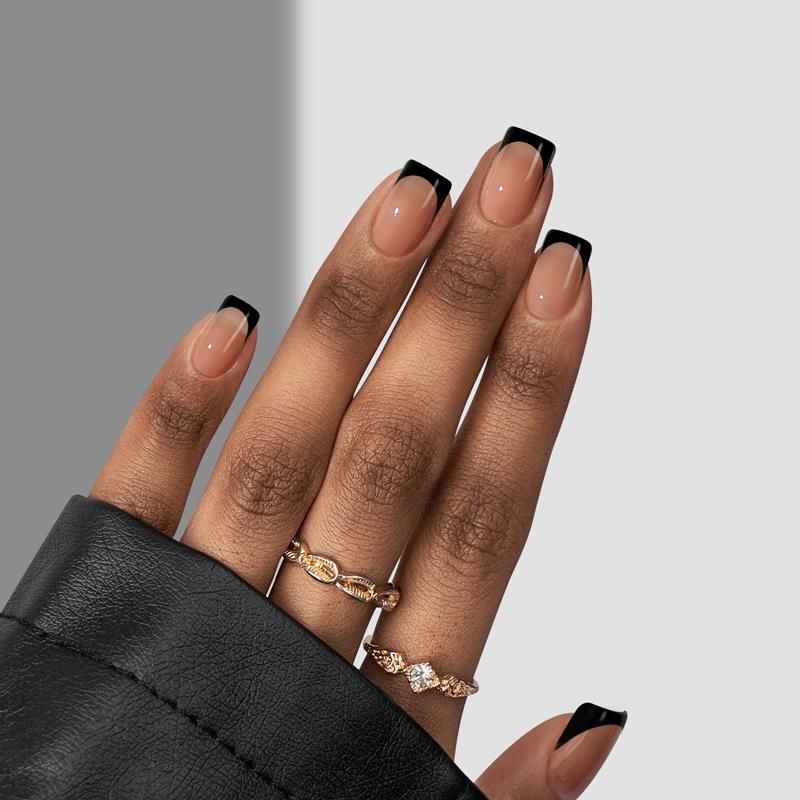 “XCOATTIPS® Black French Short Square Brown Nails – Set of 10”