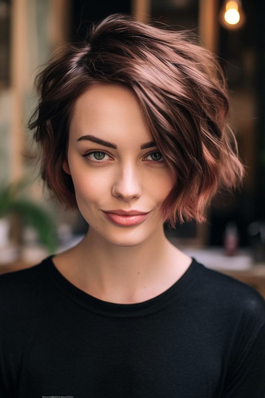 1. Tousled Texture: This photo features a short wavy bob with a tousled texture. The waves are loose and effortless, creating a relaxed and carefree vibe. This is a great look for everyday wear, as it’s low-maintenance and easy to style.