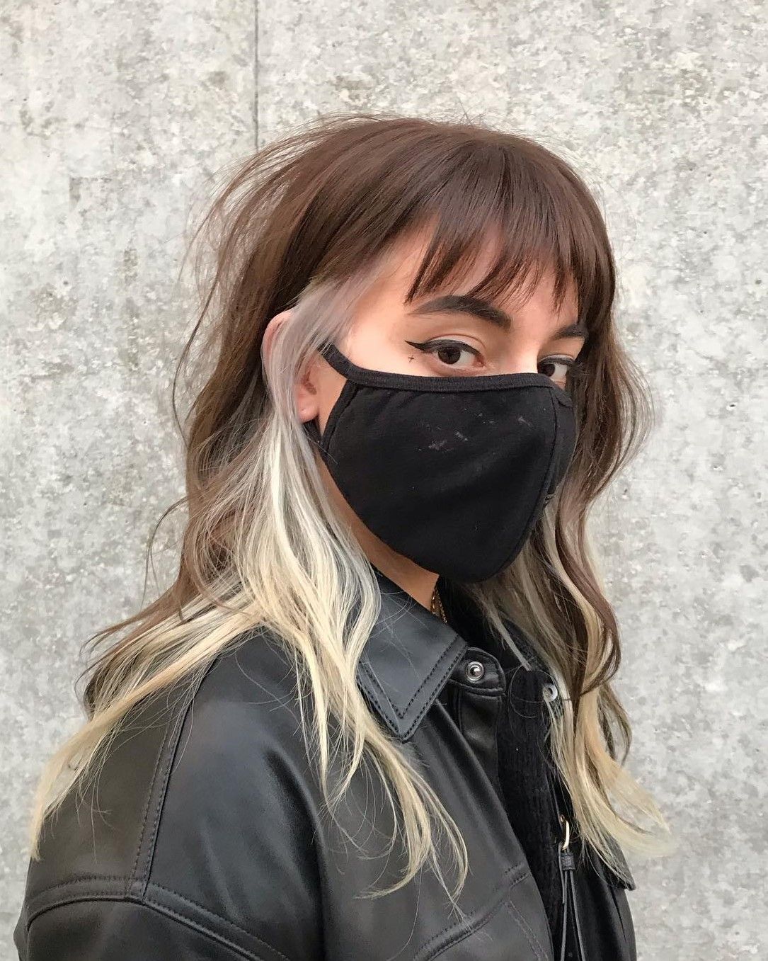 If you work in a professional setting, you may be concerned about whether or not colorful hair is acceptable. The beauty of peekaboo highlights is that they can be easily hidden when necessary. You can confidently rock your bold hair colors outside of work and simply tuck them away while you’re in the office.