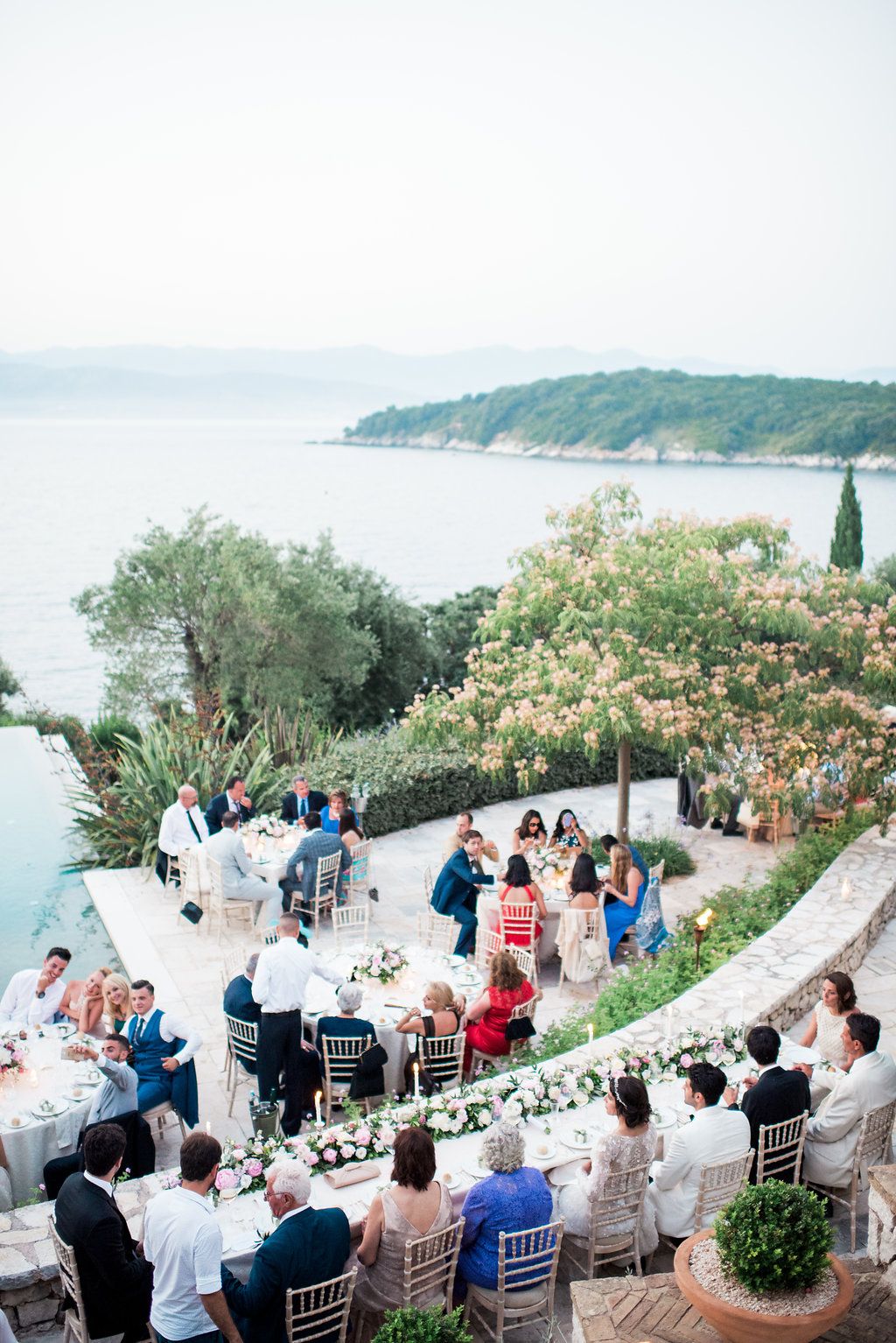 The destination wedding on Corfu Island was held at a stunning beachfront villa, providing a private and intimate setting for the ceremony and reception. The villa’s beautiful gardens, sweeping sea views, and elegant architecture created a romantic atmosphere that perfectly complemented the couple’s love for each other. The Les Anagnou film photographers skillfully captured the beauty of the venue, from the lush greenery to the serene ocean views, creating timeless images that the couple will cherish for a lifetime.