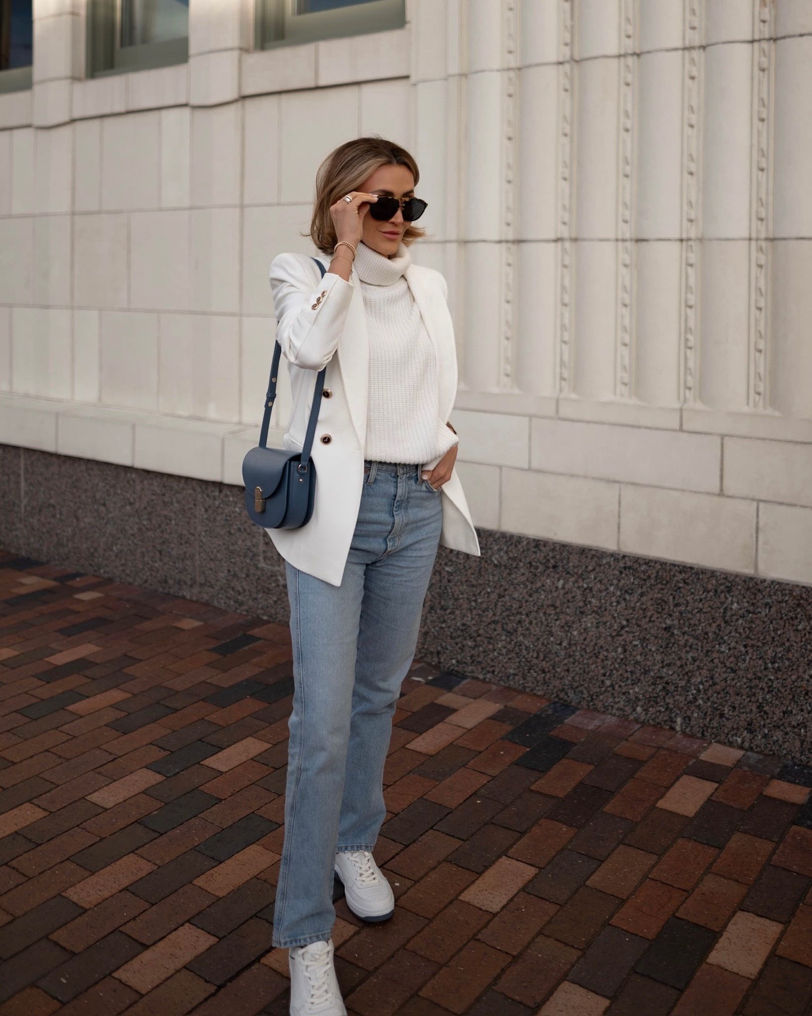 White sneakers can even be worn to work or business meetings, depending on your workplace dress code. Pair them with tailored trousers and a blouse for a chic and comfortable look. You can also wear them with a pencil skirt and blazer for a more polished outfit. Opt for sleek white sneakers without any flashy logos or designs for a professional look.