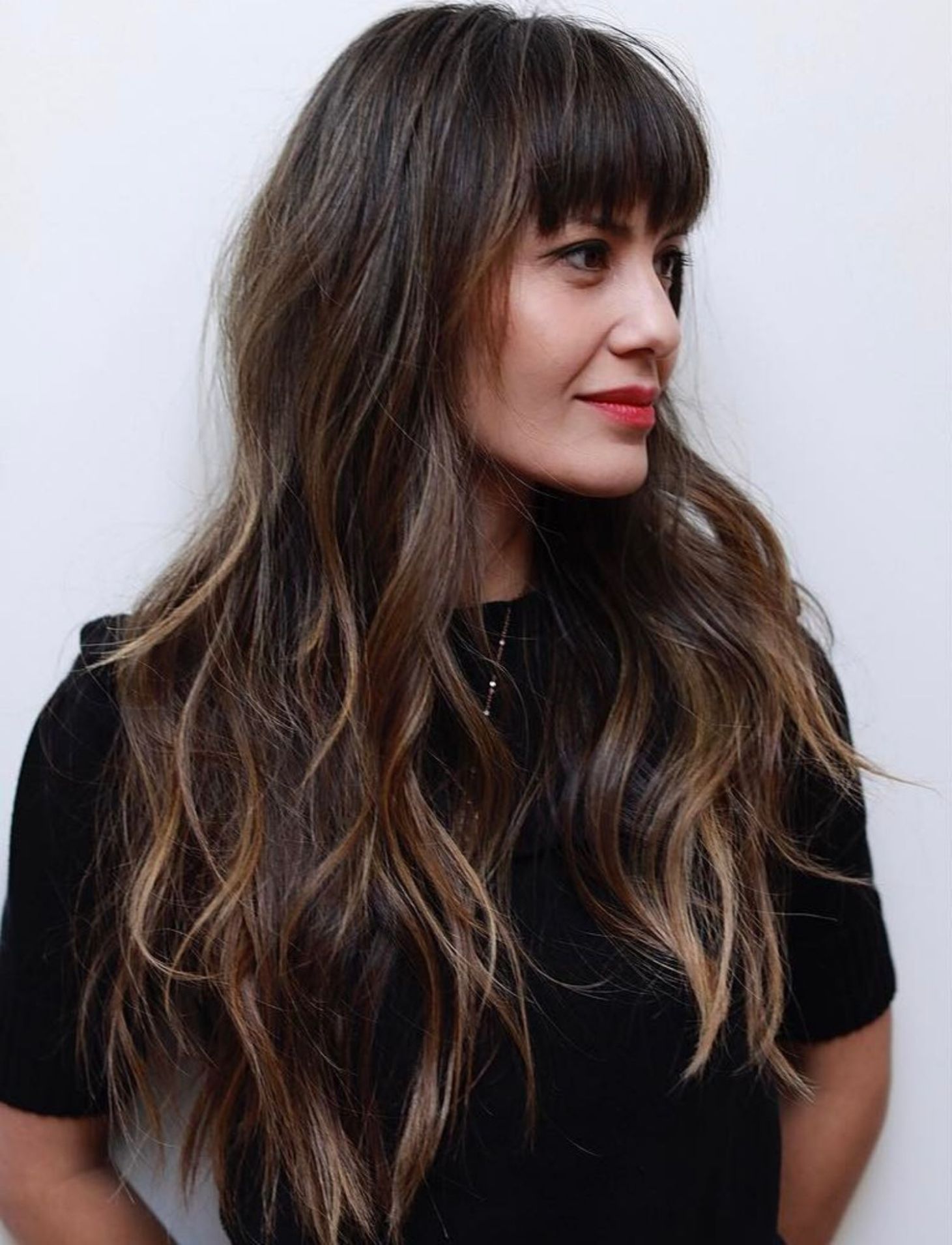One of the most popular long hairstyles with bangs and layers is the classic side bangs look. This style features long layers that frame the face, with side-swept bangs that add a touch of sophistication. The layers help to add volume and movement to the hair, while the bangs frame the face beautifully. This hairstyle is versatile and can be styled in many different ways, making it perfect for any occasion.