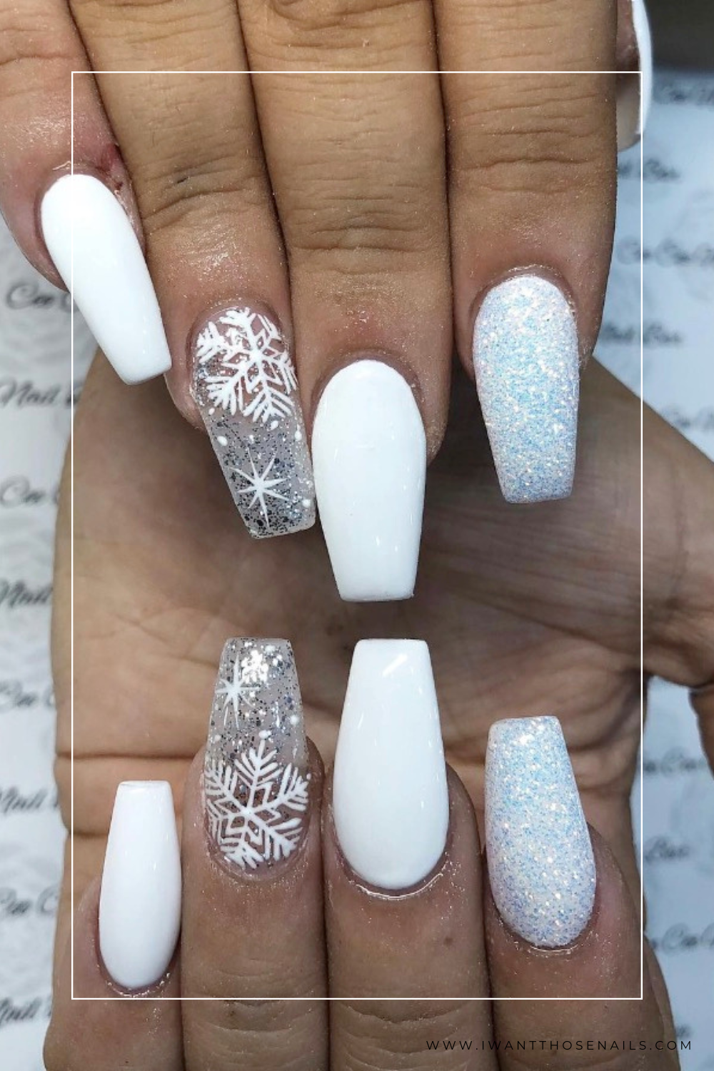 2. Glittering Snowfall Nails