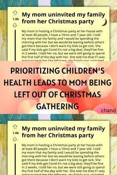 If you find yourself in a situation where prioritizing your children’s health leads to you being left out of a Christmas gathering, it’s important to remember that you are not alone. Many parents are facing similar challenges, and it’s okay to feel disappointed or upset. However, here are some suggestions to help you navigate this difficult situation: