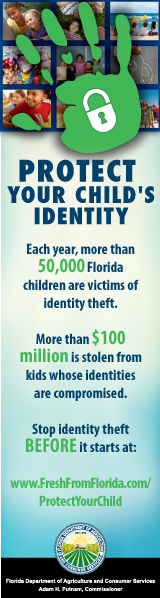To create a credit report for your child and freeze it, contact the following credit reporting agencies: Equifax, Experian and Trans Union. Details on the documents these agencies will need and sample letters are available at www.FreshFromFlorida.com/ProtectYourChild. The fee to freeze your child’s credit is a low, one-time fee of $10 per agency, or waived if your child is already a victim of identity theft. Any parent or legal guardian of minors up to 16-years-old may sign up their child. The freeze lasts until the parent contacts the credit bureau to remove the freeze, or until the child reaches adulthood and asks for the freeze to be removed.