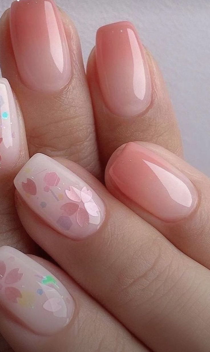 Embrace the beauty of fall with a stunning fall leaves nail design. Start by painting your nails with a nude base color. Use a thin brush to create different colored leaves on each nail, including shades of red, orange, yellow, and brown. Add some gold accents for a touch of elegance.