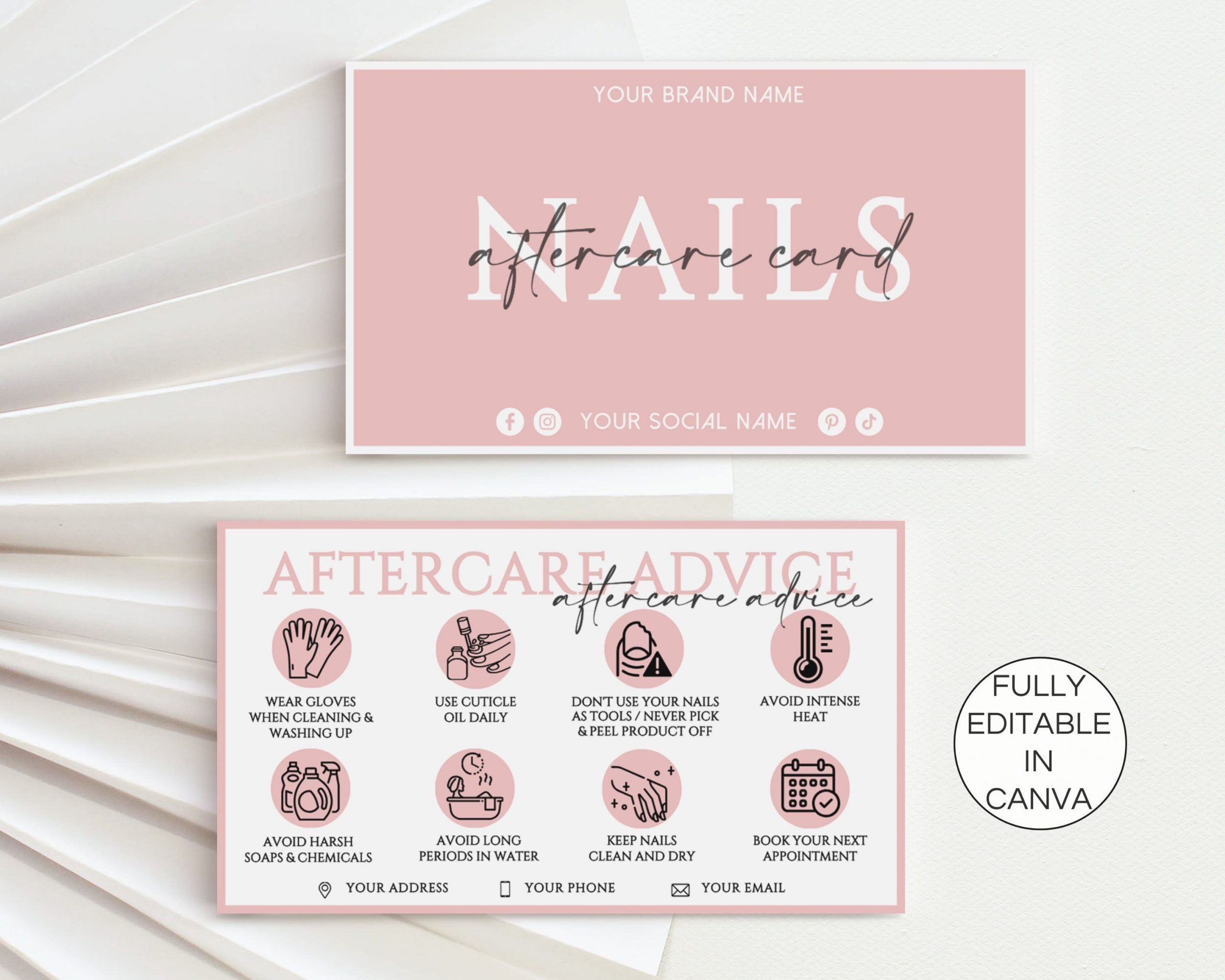 “Manicure Aftercare Card Template | Printable Nails Care Instructions | Customizable Beauty Salon Canva Template”