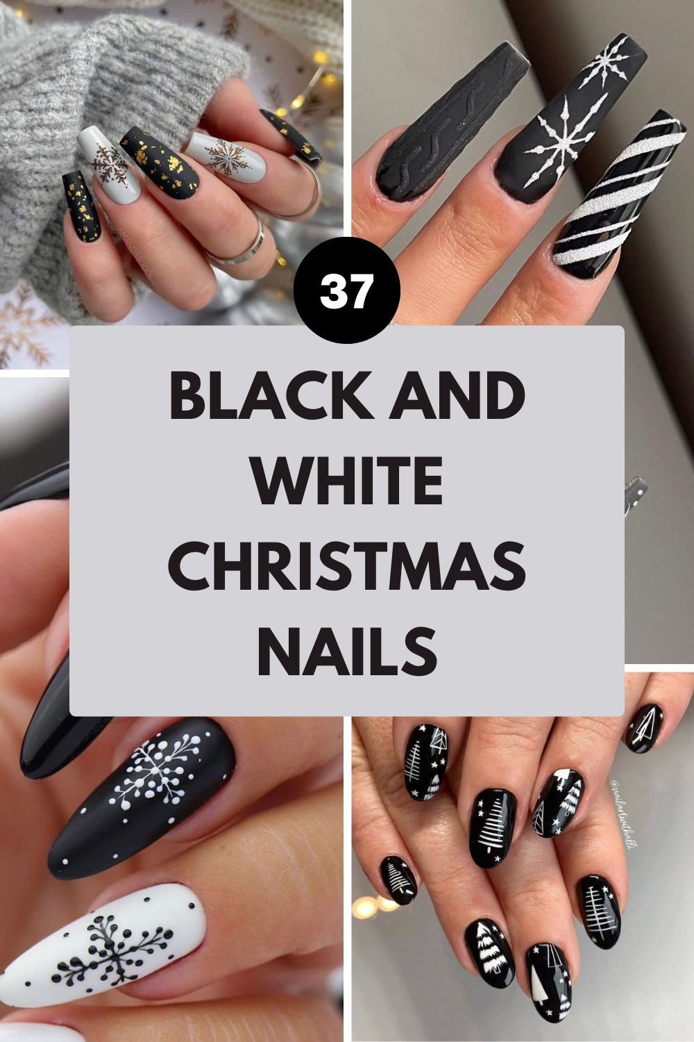 “Stylish Black and White Christmas Nail Designs for a Chic Holiday Look”