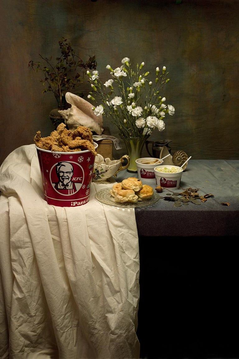 “Baroque-Inspired Still Life Photography by Aaron Álamo: A Contemporary Twist on KFC Cuisine”