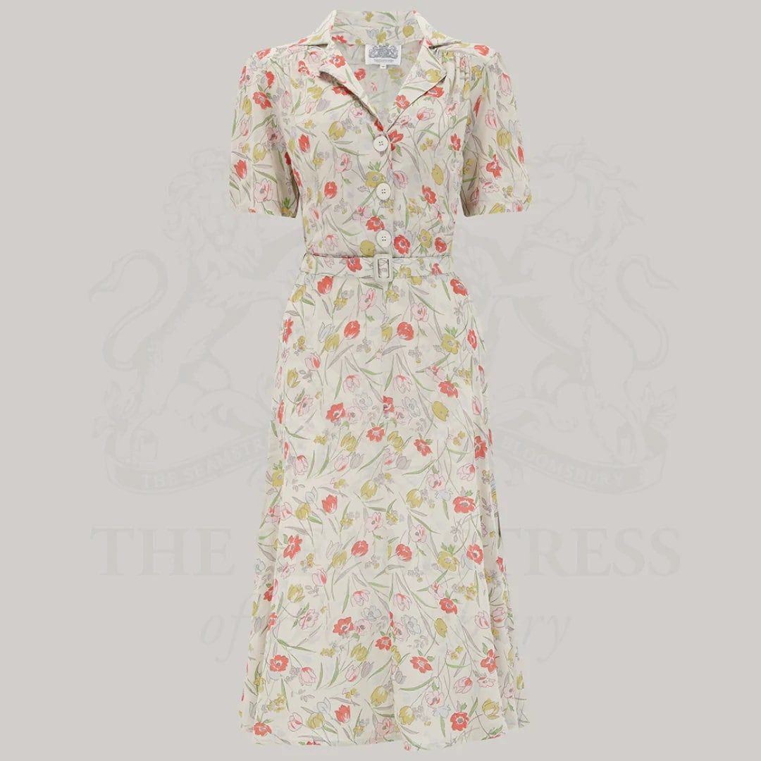 Vintage 1940s Style Poppy Print Georgette Lisa Dress by The Seamstress of Bloomsbury