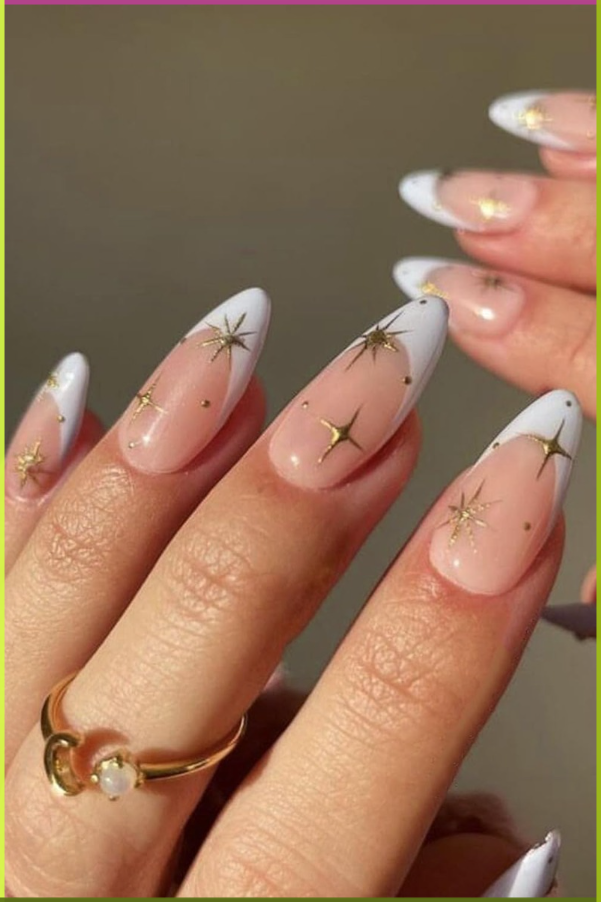 “24-Piece Almond-Shaped French Tip Nails with Gold Strip Design, Elegant False Nails for Women.”