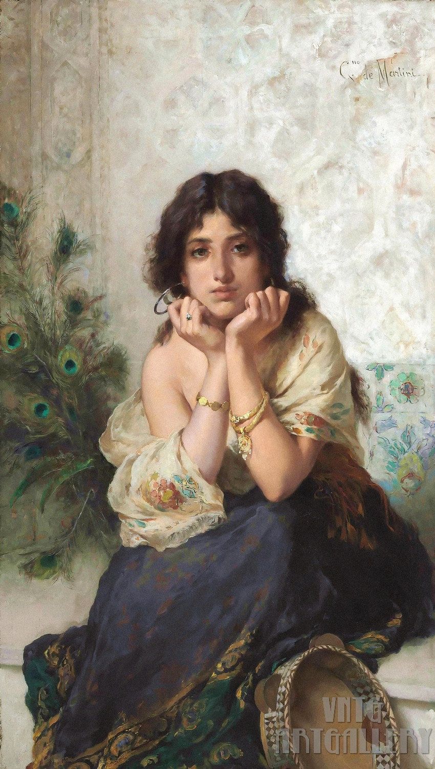 Gaetano de Martini “The Tambourine Girl” (1899) Canvas Gallery Wrapped or Framed Giclee Wall Art Print