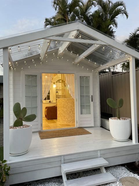 “Waves Hair Salon: Mediterranean Inspired Cabin Build by SheShed Australia”