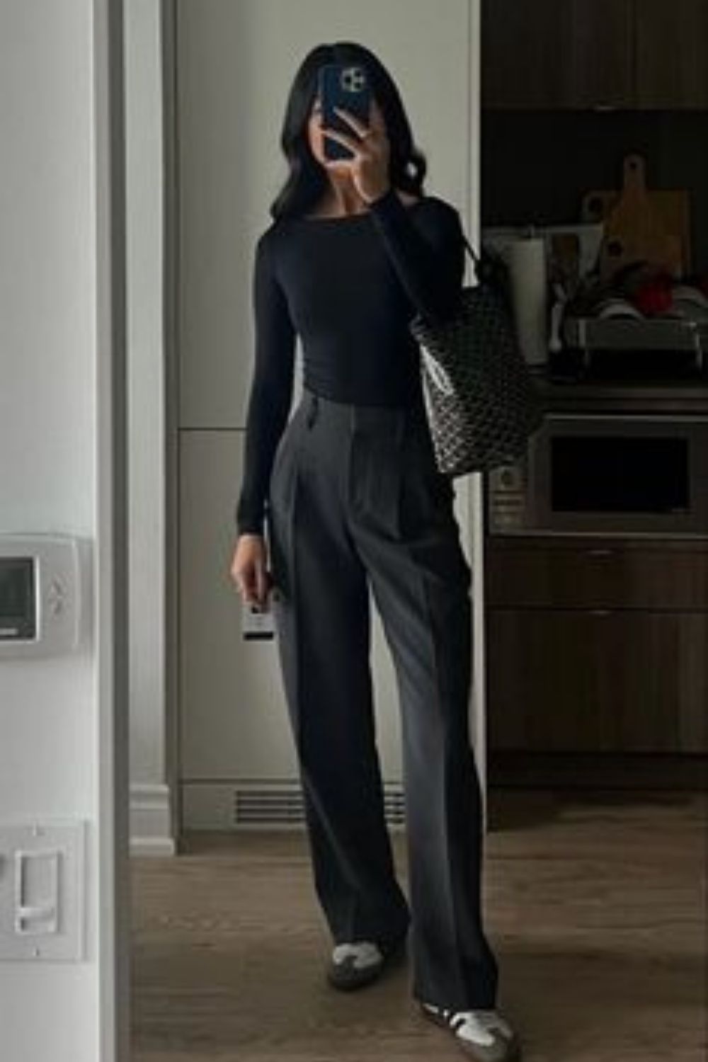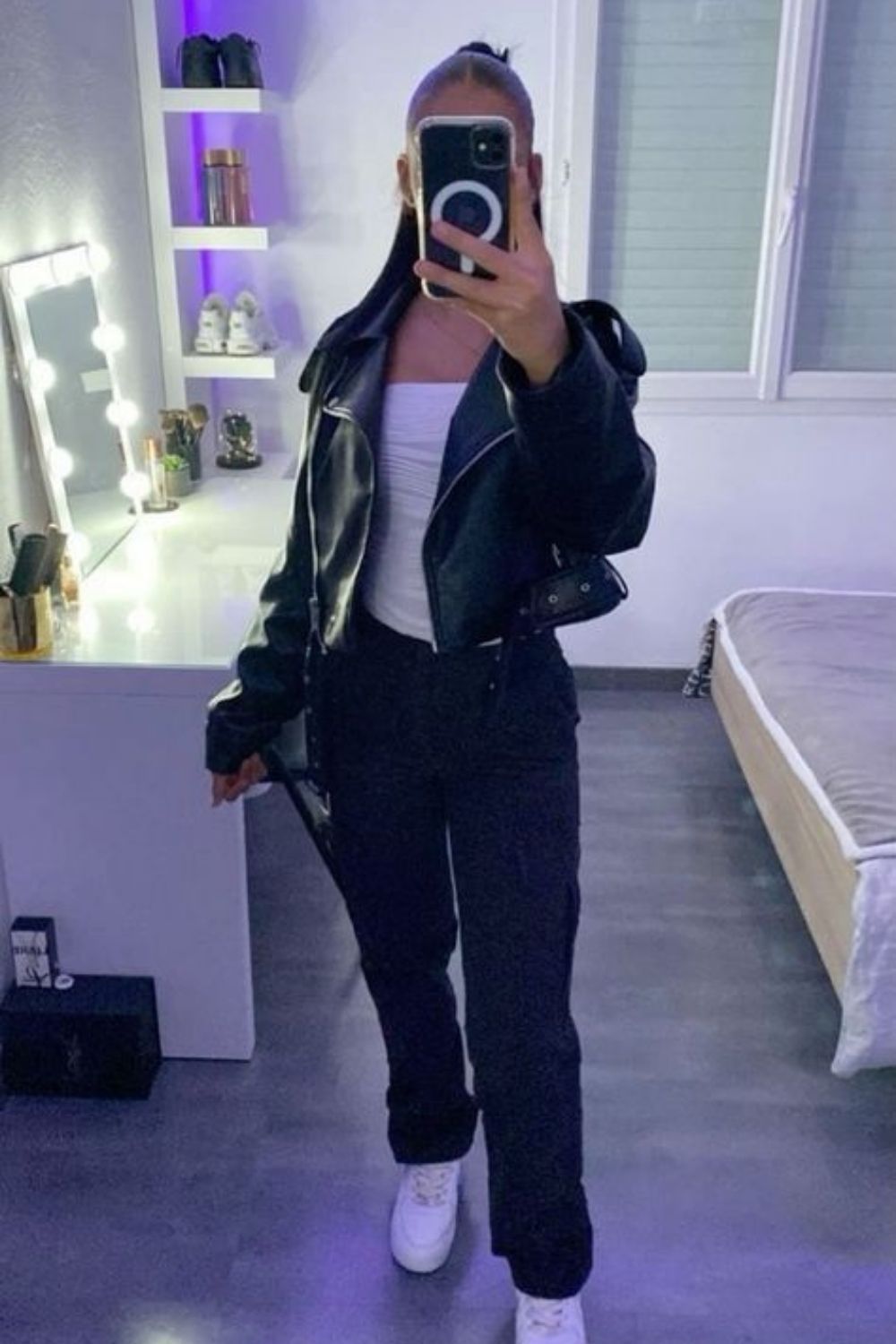 “Chic and Casual: White T-shirt and High Waisted Jeans Outfit with Statement Belt and Trendy Sneakers”