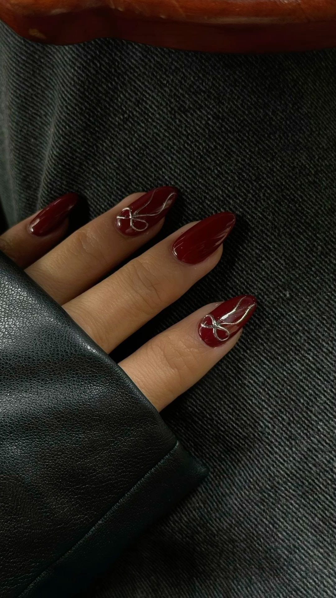 Description: Explore the latest trend in nail art with beautiful almond-shaped nails featuring elegant gray details.