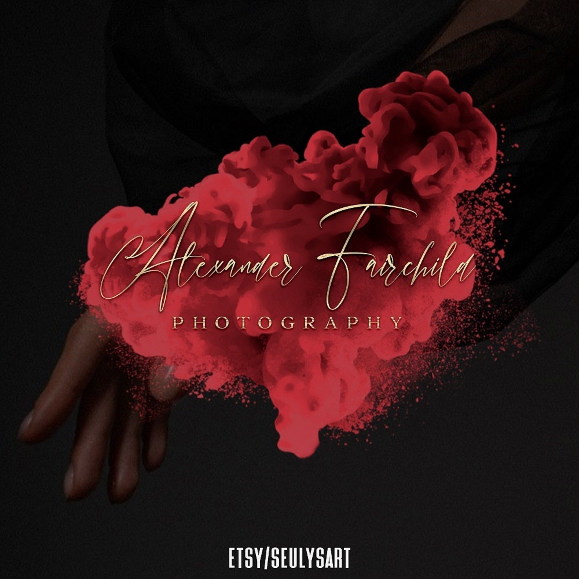 Feminine Red Watercolor Smoke Signature Beauty Logo with Rose Gold Accents for Nail Art Business