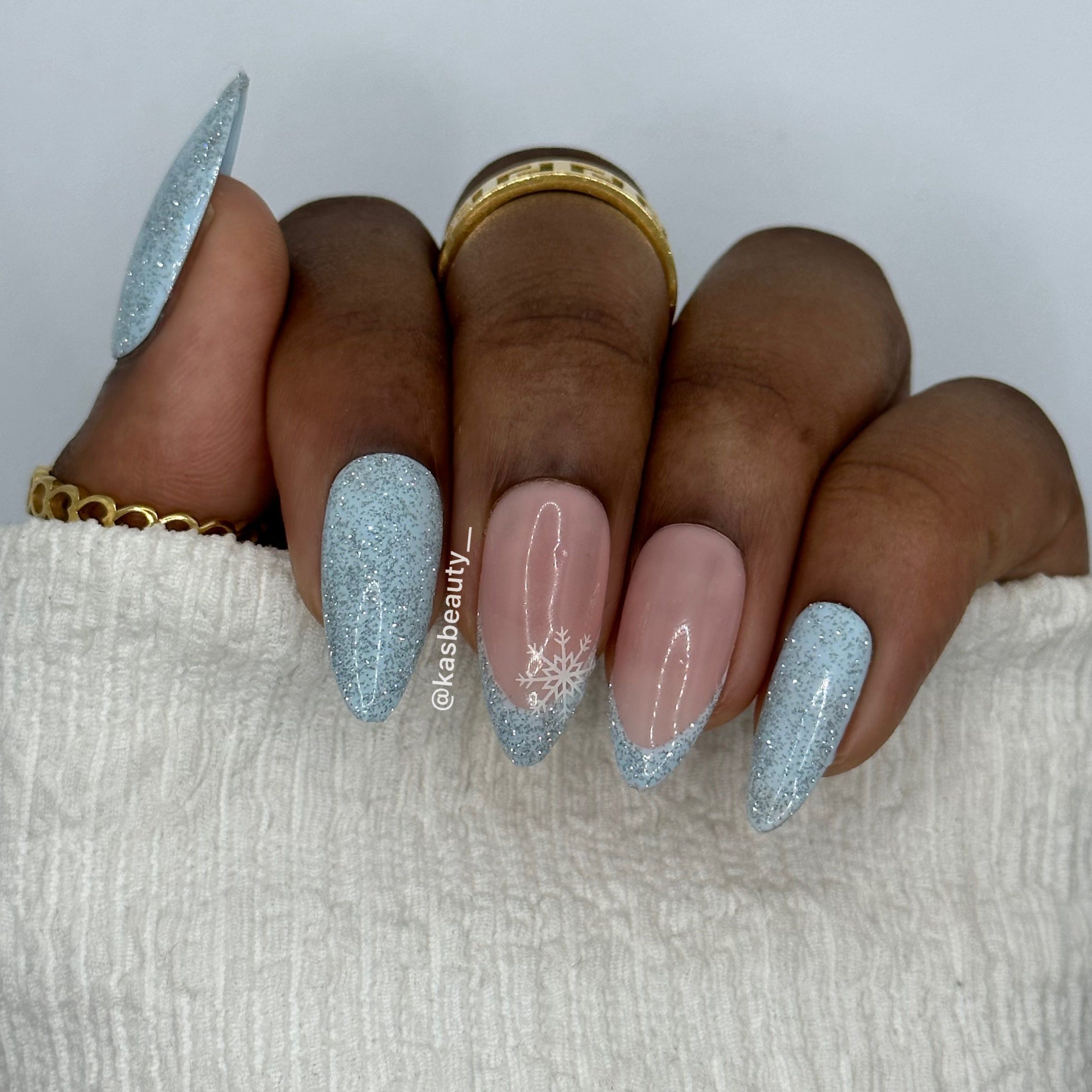 Winter Xmas Almond Medium Length Press On Nails by Snowflake: Get Festive with Stylish Nails!