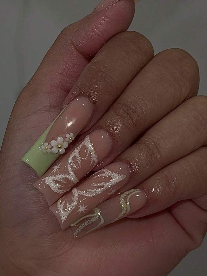Keywords: press on nails, long square, fake nails, glossy, white French tip, acrylic nails, glue