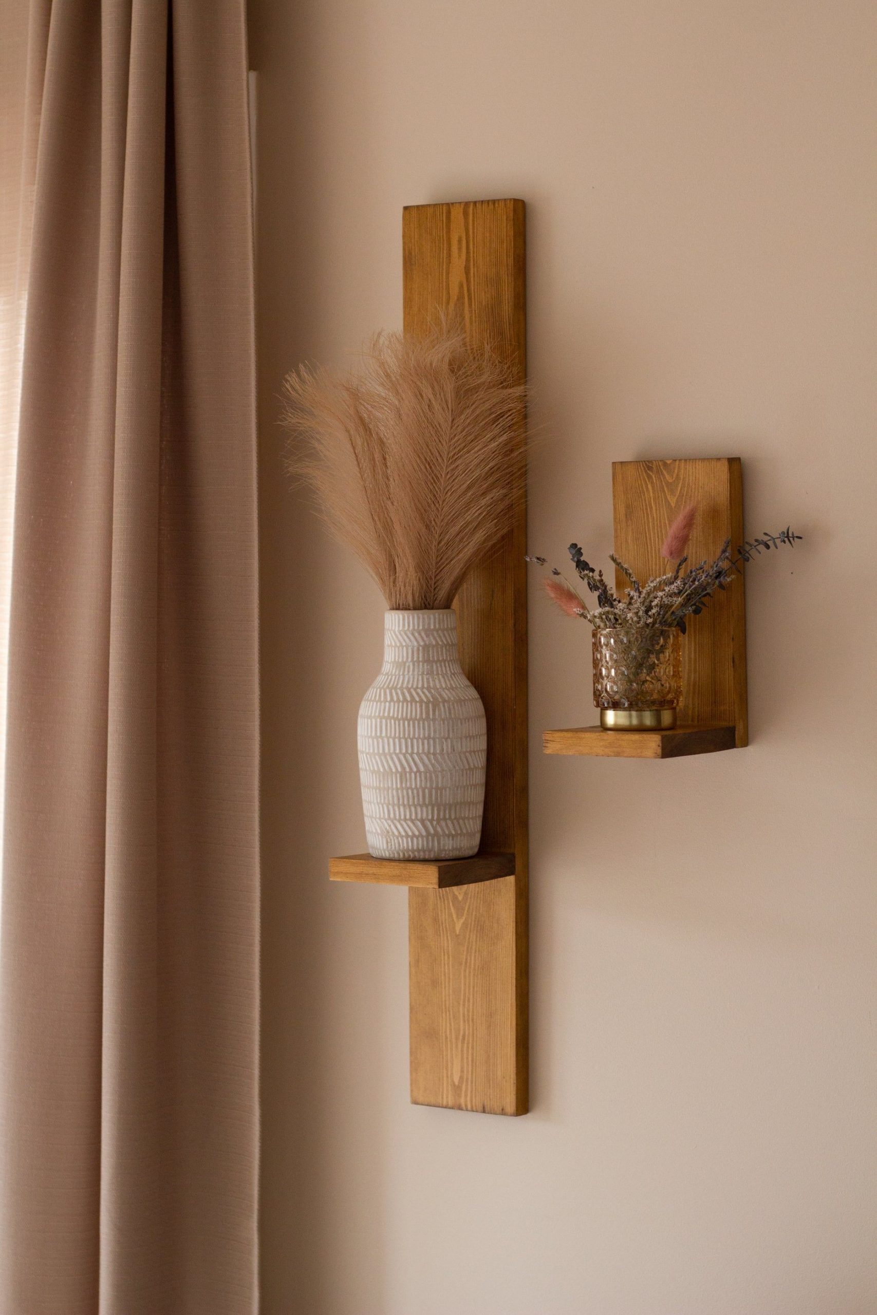 Rustic Fruitwood Stain Wall Hanging Wood Shelves – Set of Two Plant Shelves