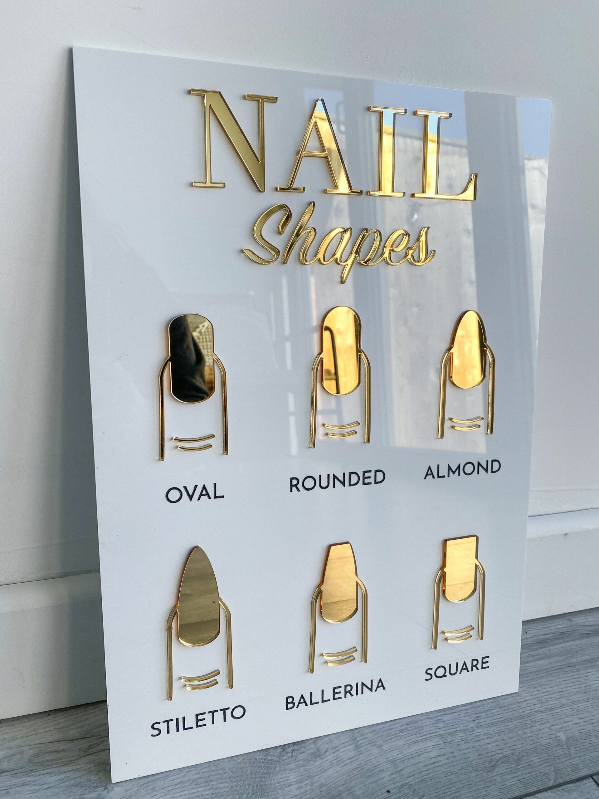 Nail Shape Acrylic Sign for Salons and Aesthetics to Showcase Nail Care by Professional Techs.