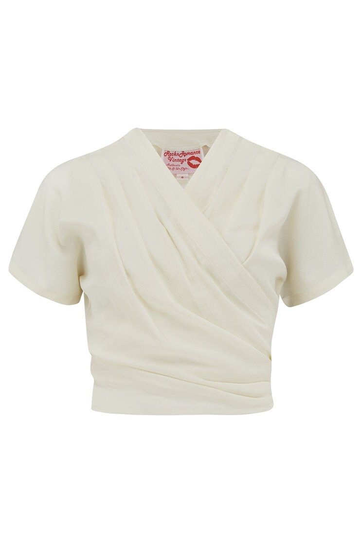 Vintage Style Antique White Darla Short Sleeve Wrap Blouse – Buy Now