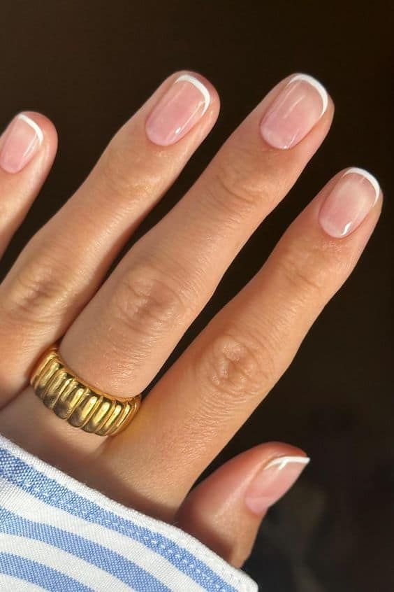 Sophisticated French manicure for short nails that exude elegance and style. Perfect for any occasion.
