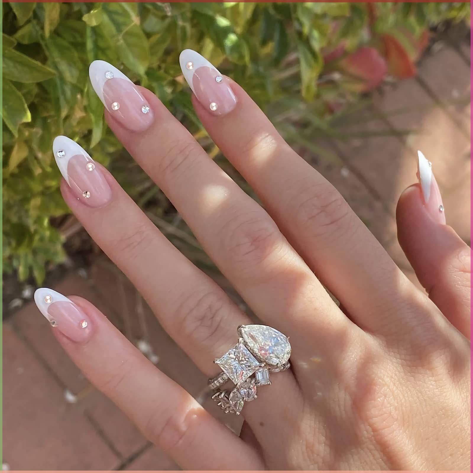 Stunning white French tip almond press on nails with pearl design, 24 pcs for glam.