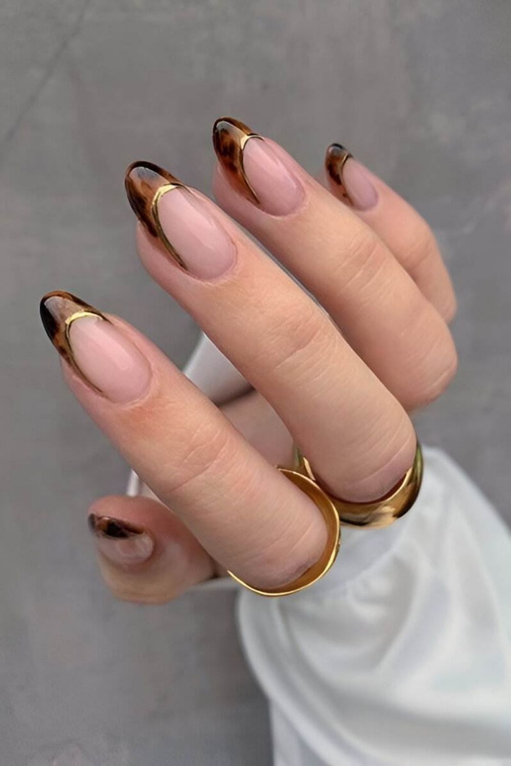 Beautiful French tip nails with a stunning brown twist. Perfect for a classy and elegant look.