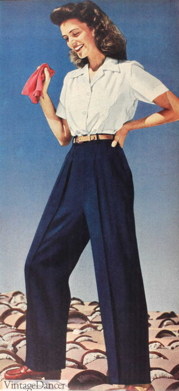 1940s Pants Fashion: A History of Trousers, Overalls, Jeans, Sailor, and Siren Suits