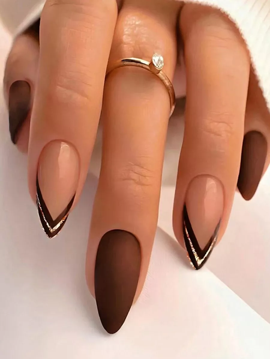 Upgrade your style with French atmosphere nails in brown and white tones, including nail buffer and jelly glue.
